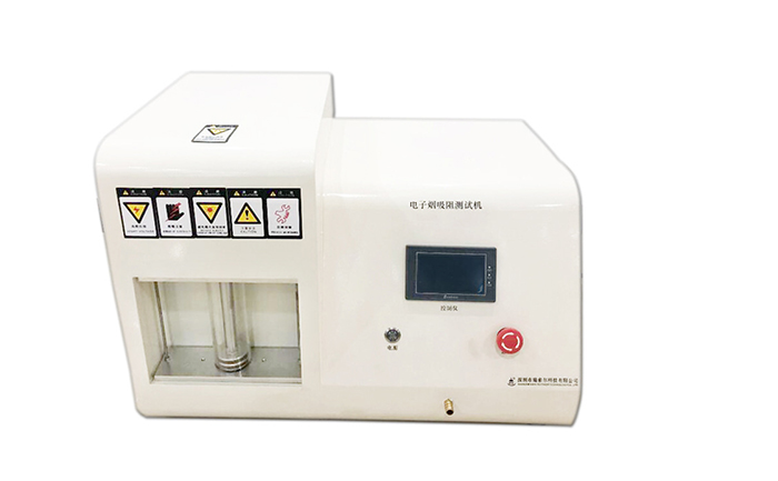 本機是用來測試成品霧化器、電子煙電池桿、 霧化器等一吸一停所得之口數。能精確的控制每口的抽吸容量,觸摸屏控制及設定相關參數。其原理是設置好每口抽吸容量、抽吸時間、抽吸間隔時間、循環次數等參數后對產品一吸一停如此反復循環直至:電池耗盡(下降到一定的電壓)、煙油消耗完畢、或發熱絲燒斷等不再正常工作后所得的次數,以此研判霧化器的使用壽命,并加以改良。